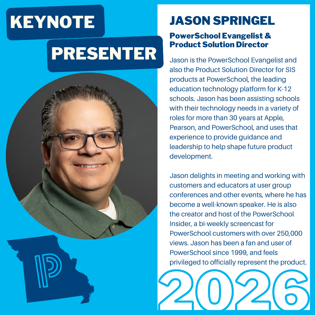 Want to share your expertise? We're seeking dynamic speakers for our breakout sessions! Submit your proposal and help shape the future of PowerSchool in Missouri. If your session is selected you will receive complementary registration AND bragging rights to all of your colleagues.