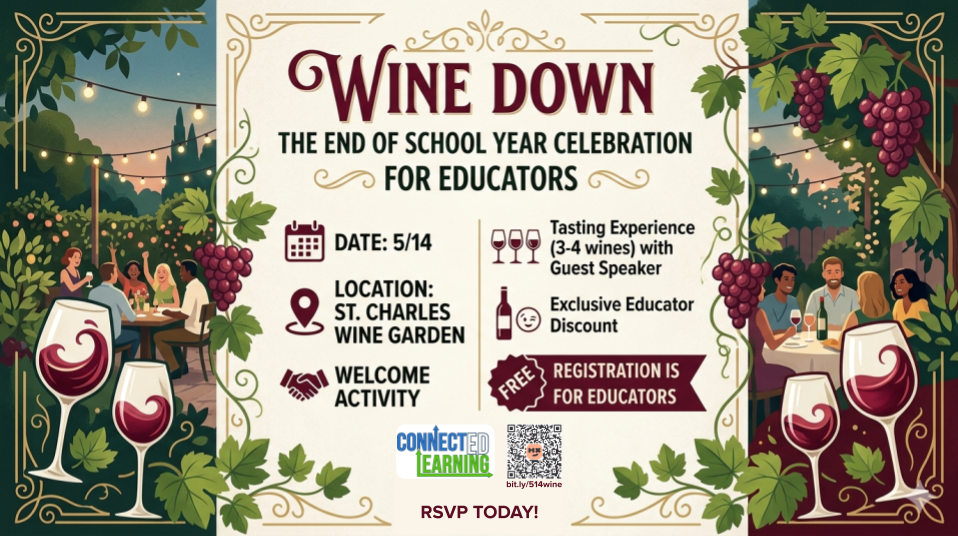 Please join us for a "Wine Down" at St. Charles Wine Garden. We’re hosting an exclusive evening for our educators to relax, sip, and prepare for the summer break.
